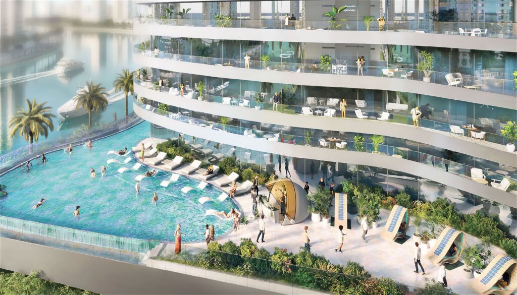 Altitude de GRISOGONO is a gorgeous waterfront residential complex located in Business Bay, offering amazing views of the canal and the Burj Khalifa. You can choose a residence among a stunning collection of studios, 1–3 bedroom apartments and 2-bedroom duplexes. The project by DAMAC Properties provides a prestigious lifestyle with access to floating therapy pods, a beauty bar, promenade, infinity lap pool, and a roof observation deck.