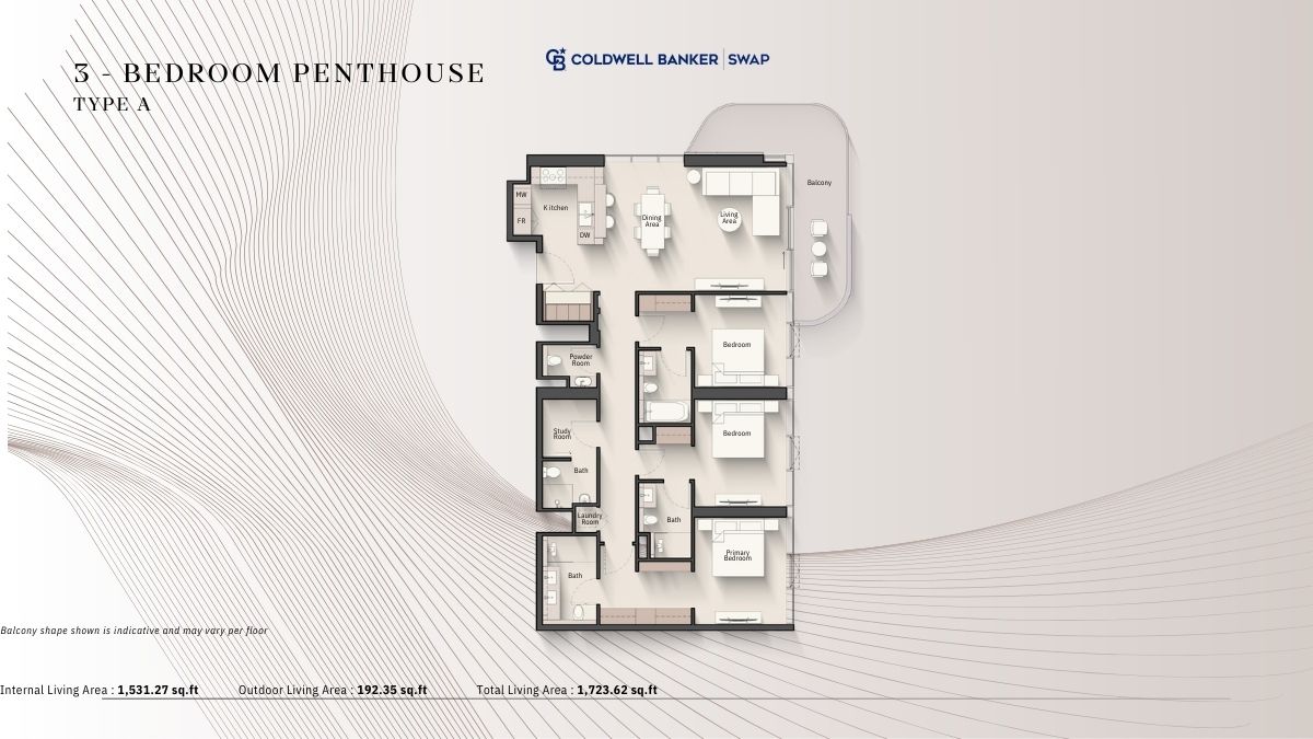 The development features three sculptural residential towers, designed with flowing architectural forms that reflect the movement of wind and water along the coast. Curved façades and layered terraces create a dynamic skyline presence while capturing natural light, sea views, and the surrounding marina environment.
